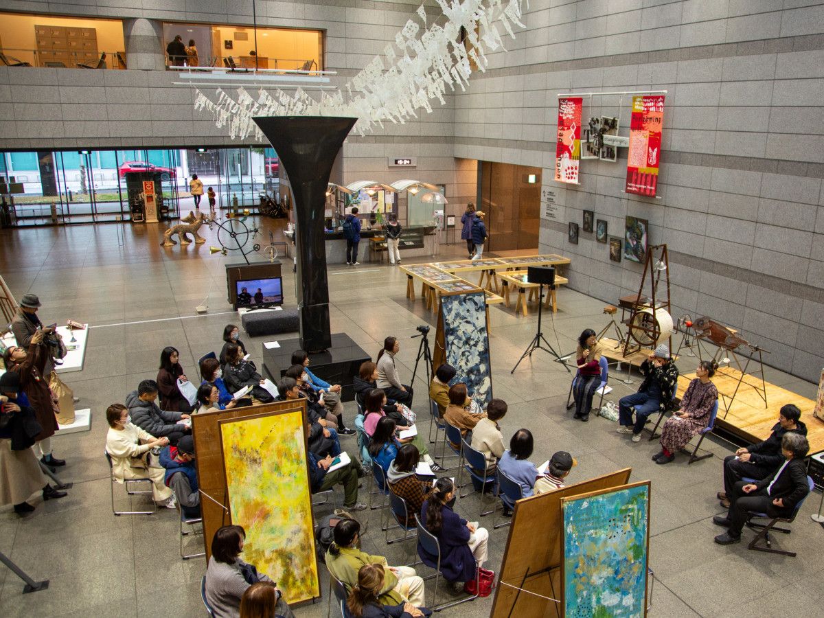 トークイベントには平井さんの友人や豊島島民も訪れた=高松市美術館で「ウサギニンゲン」展