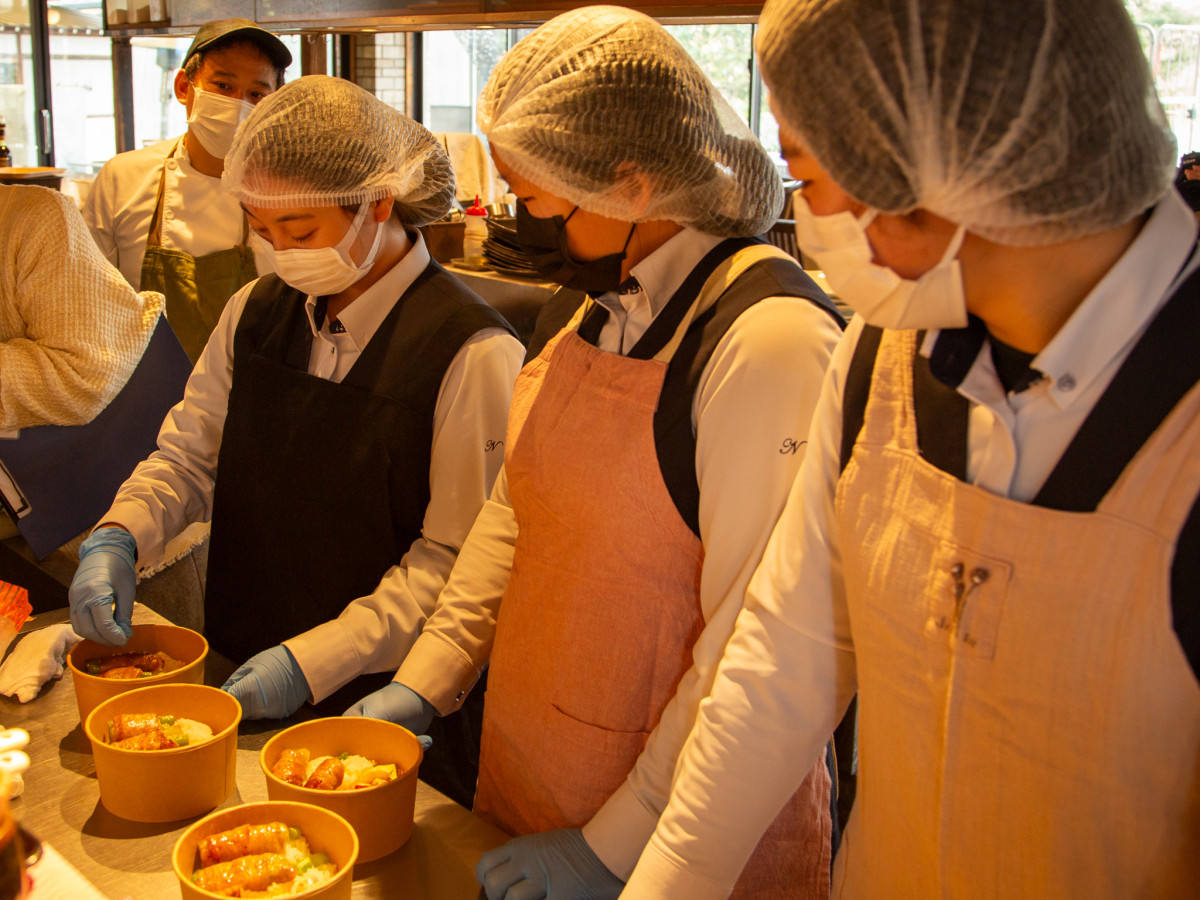 香川県立農業経営高校の生徒が2月20日、「仏生山の森」(高松市仏生山町甲)内のレストラン「窯焼きバーグ五十八」で、入院中の子どもの付き添い家族に向けた「付き添い応援ランチ」の調理を行った。