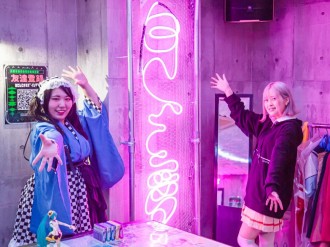 正面 入り口にも仕掛けが施されている=高松の夜カフェ「世界劇場」がリニューアル
