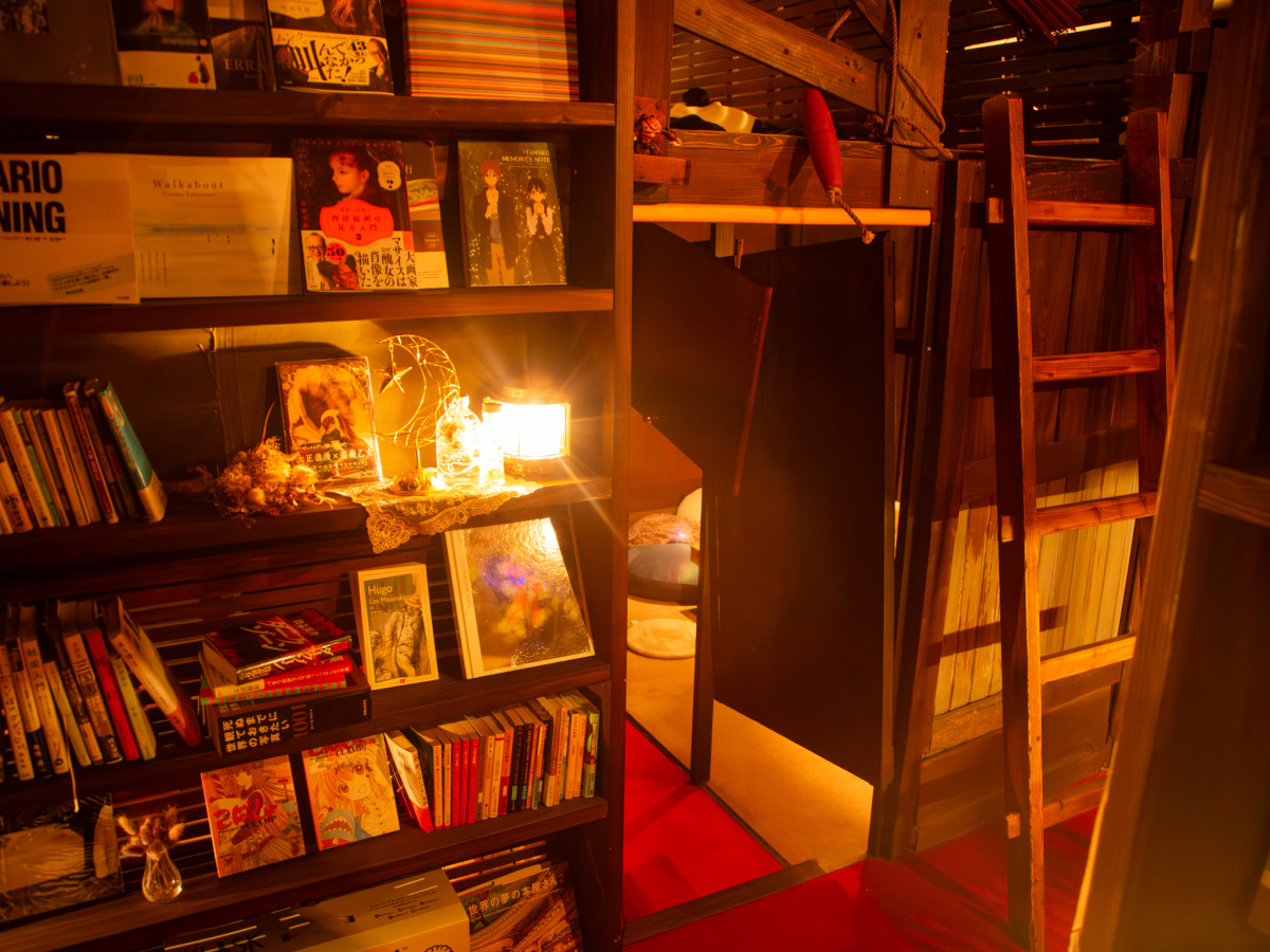 梯子を登った先のロフト席やその下にも個室席を用意する=高松の夜カフェ「世界劇場」がリニューアル
