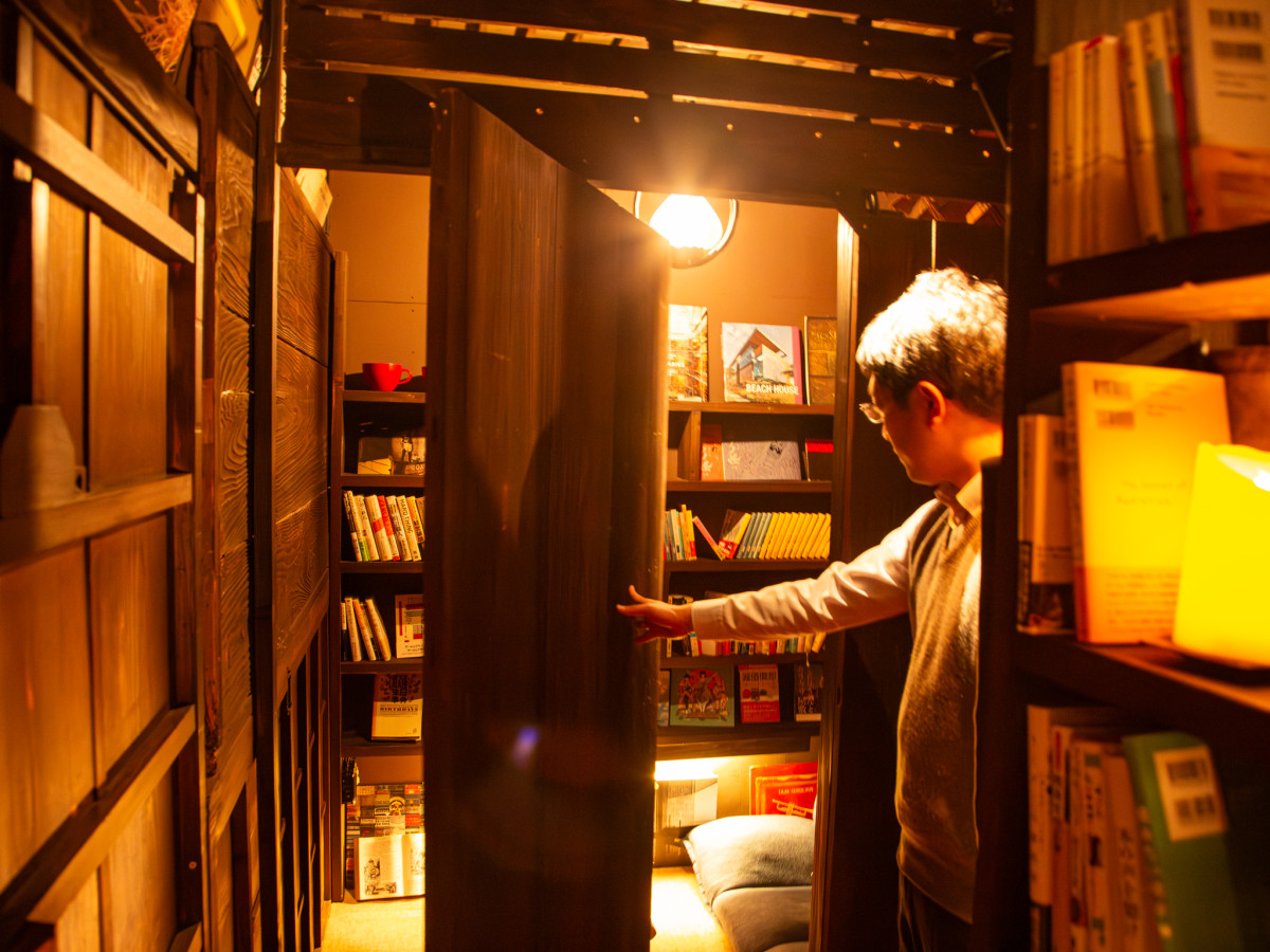 隠し扉を開いた先にある個室=高松の夜カフェ「世界劇場」がリニューアル