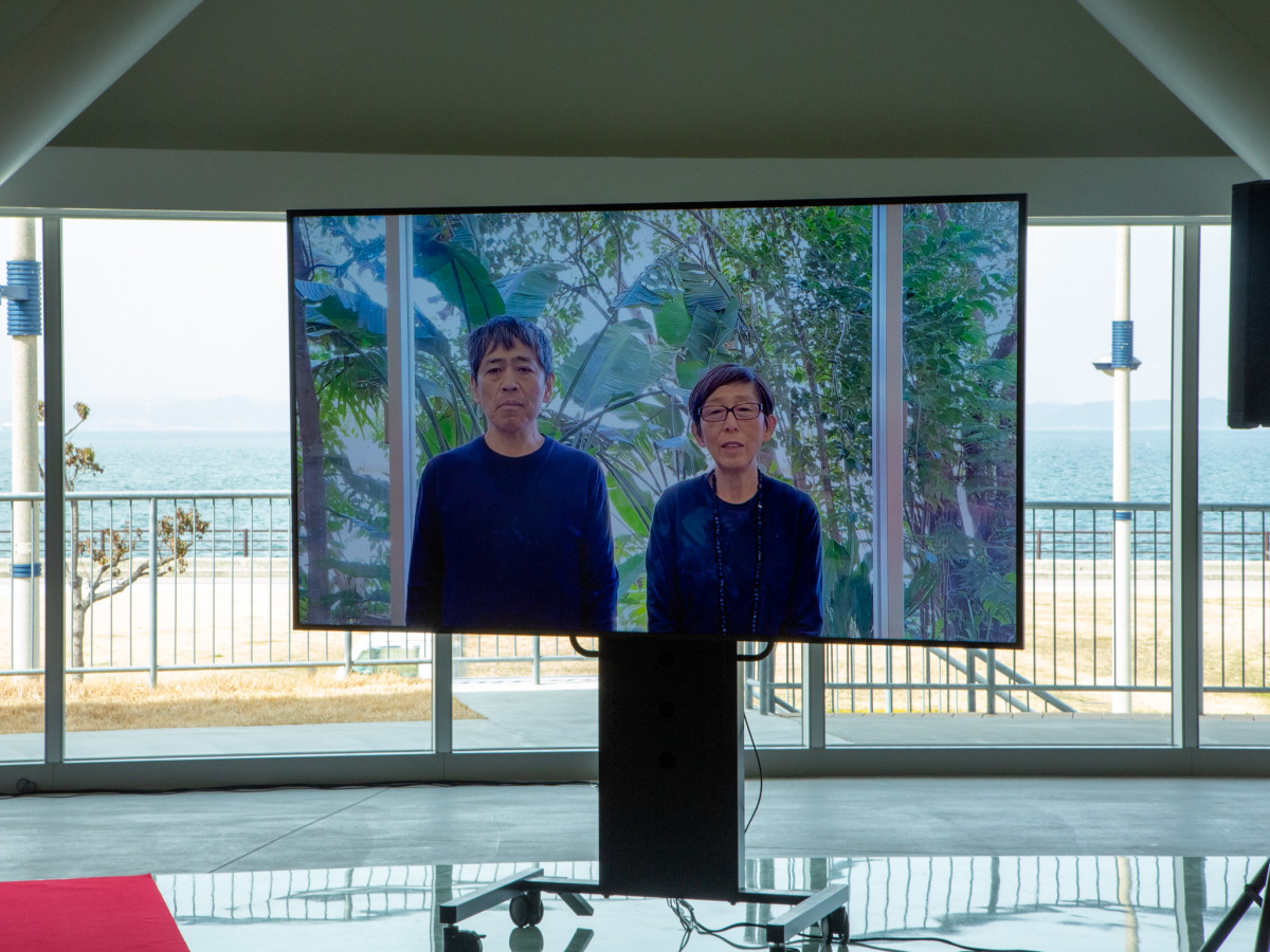 同アリーナを設計した建築家ユニット「SANAA」の西沢立衛(りゅうえ)さん(左)と妹島和世さんもビデオメッセージを寄せた=高松・あなぶきアリーナ1周年 「ベルサイユ賞」最優秀賞受賞記念セレモニーも
