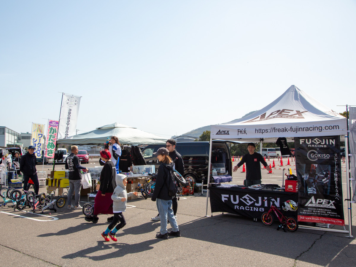 ランバイクやパーツの販売店も出店した=イオンモール高松でランバイク全国予選会「Runbike Revolution 2025 中四国ブロック予選」