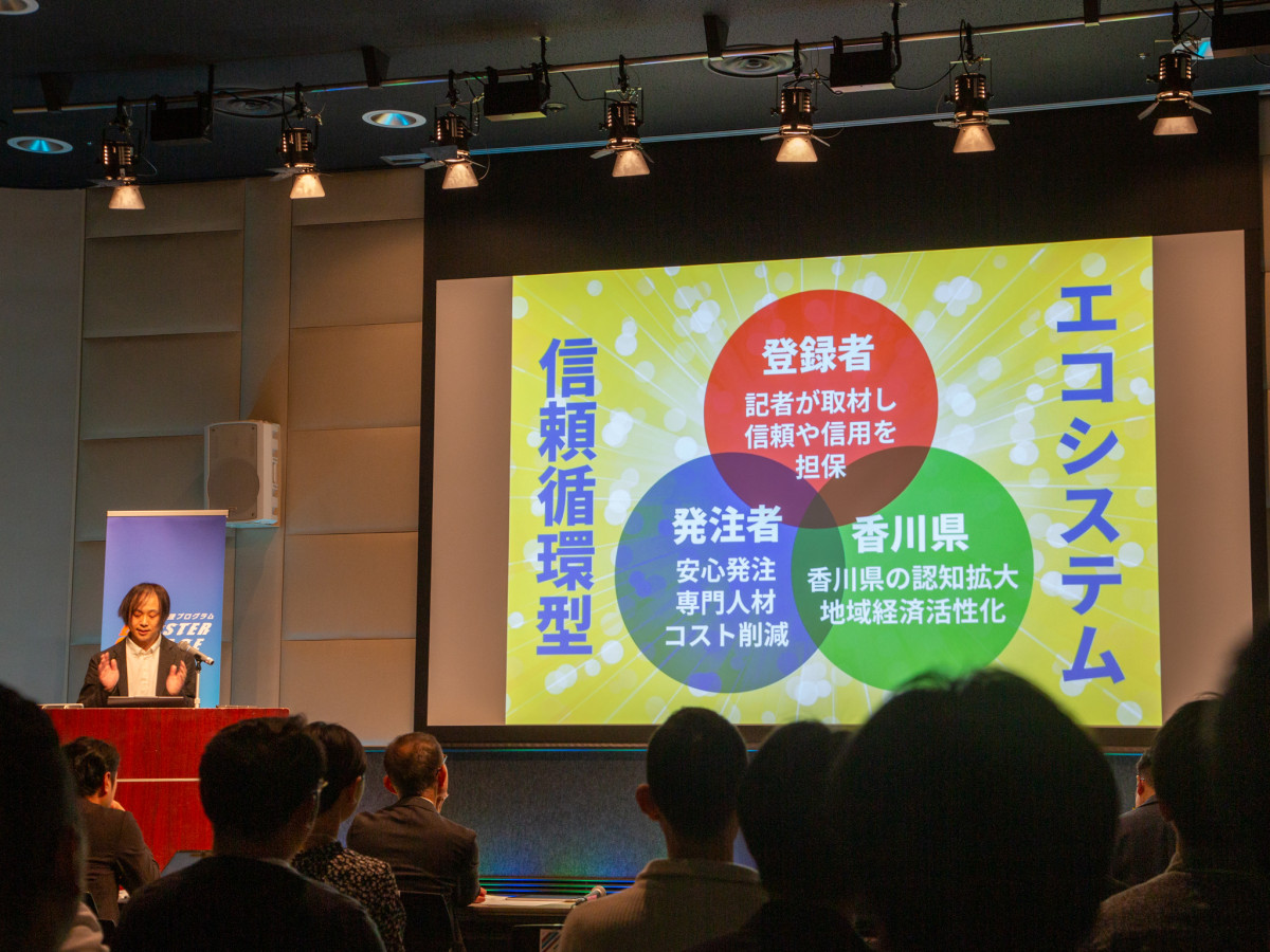 地域メディアを生かし地域の企業との連携事業を発表した「PRニュース」=高松で事業成長支援プログラム「Booster Garage(ブースター ガレージ)2025」最終ピッチ