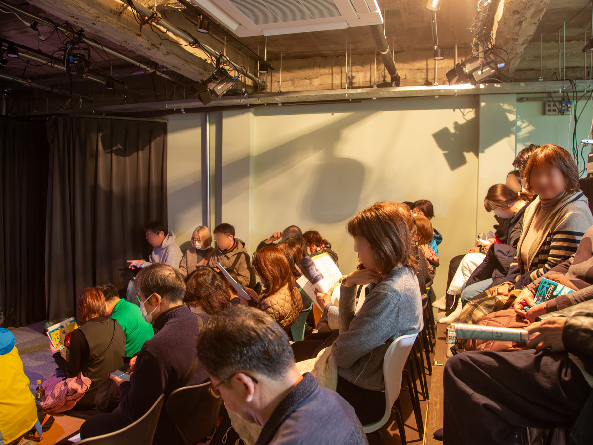 定員を超える観客が集まった=高松・田町に新小劇場「絵本の劇場カメレオン」