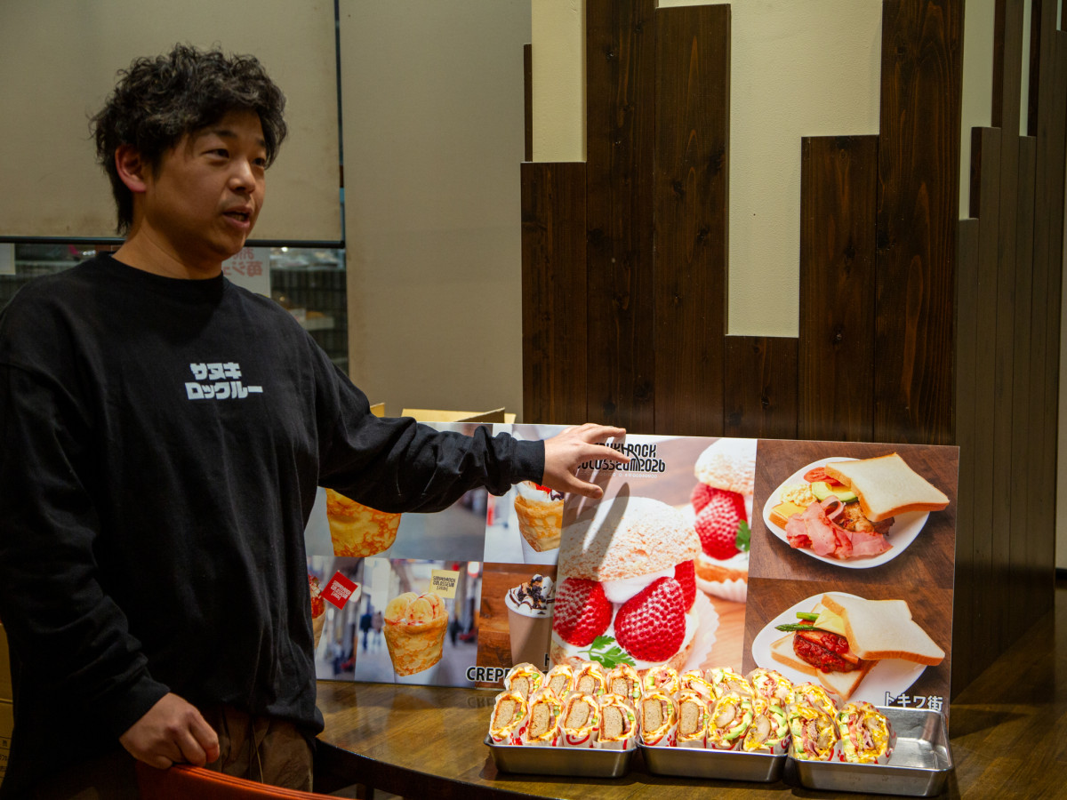 メニューの説明をする「三びきの子ぶた」店主の野沢直弘さん=「SANUKI ROCK COLOSSEUM」に合わせ高松の商店街が限定企画