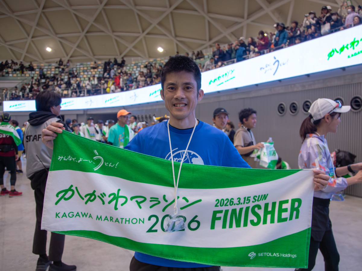 高松市内を発着点とし、近隣市町を巡る初の「かがわマラソン2026」が3月15日、開催された。当日は好天に恵まれ、スタート地点のあなぶきアリーナ香川(高松市サンポート)には県内外から多くのランナーが集結。42.195キロのフルマラソンには総勢1万439人が参加した。