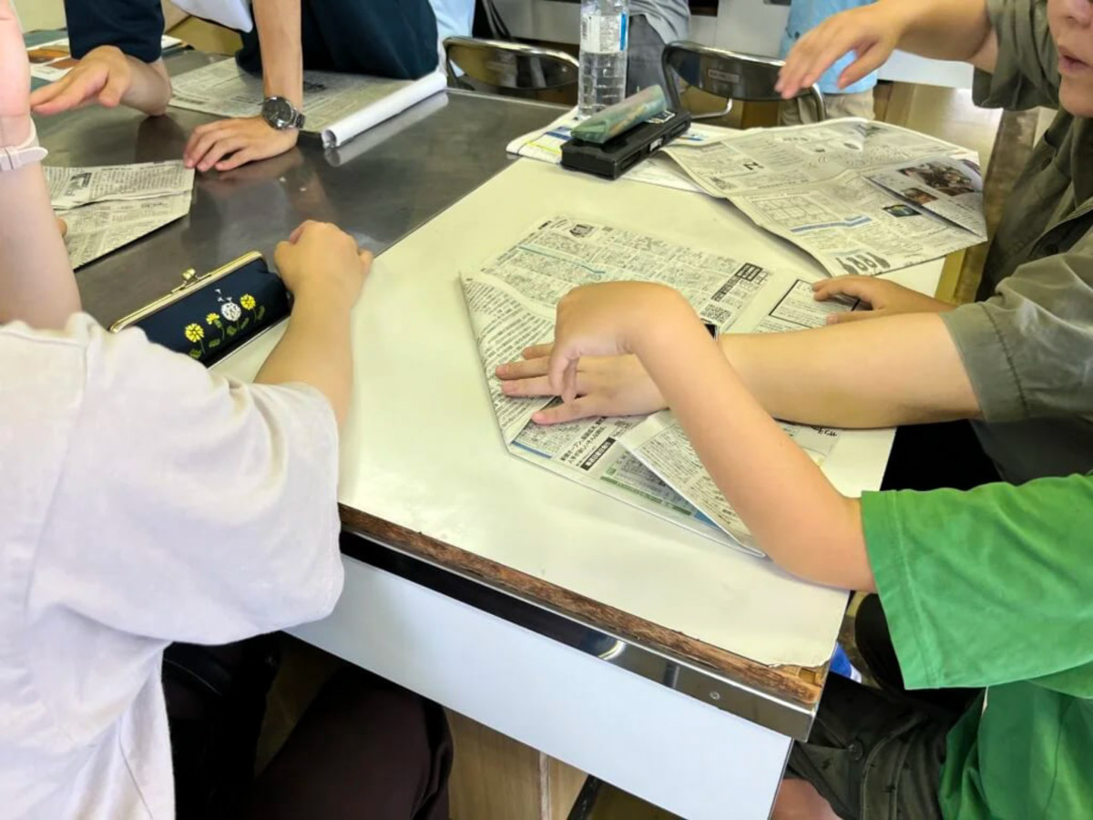 新聞紙を使った防災グッズの作り方をレクチャー=高松で親子防災合宿「ヒーローキャンプ」