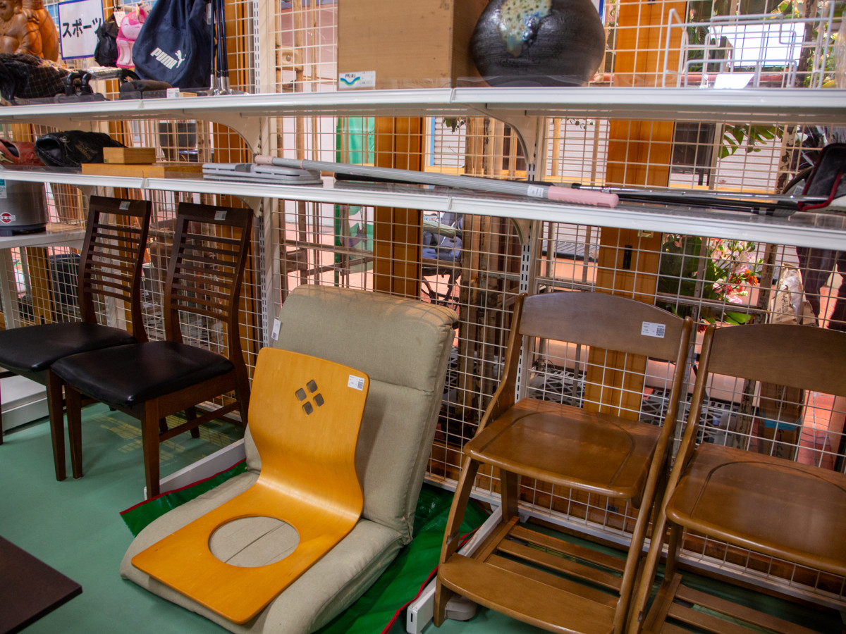 座椅子などさまざまな家具も置かれている=高松・うみまち商店街に「ジモティースポット高松うみまち商店街店」