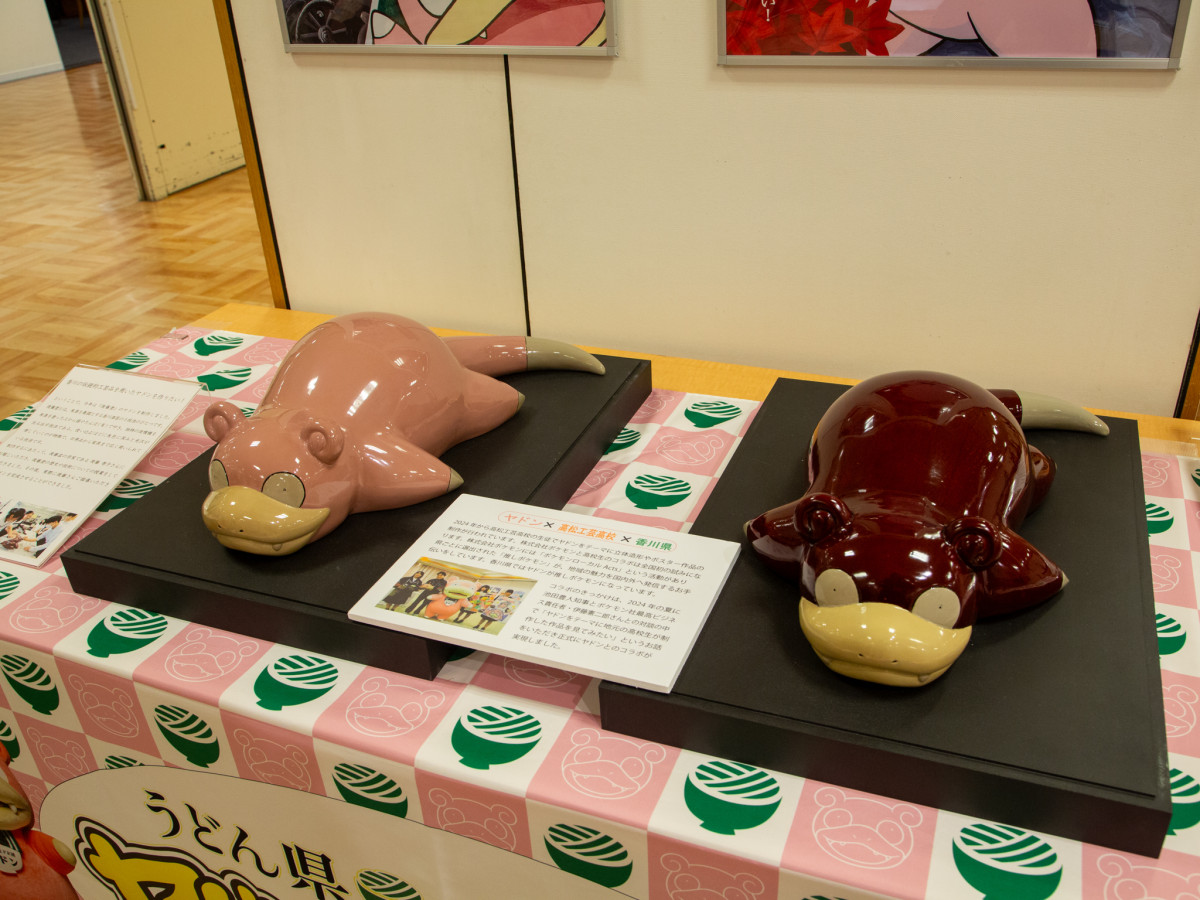 高松工芸高校の学生が作った漆塗りのヤドン=高松三越で「ポケモンローカルActs物産展」