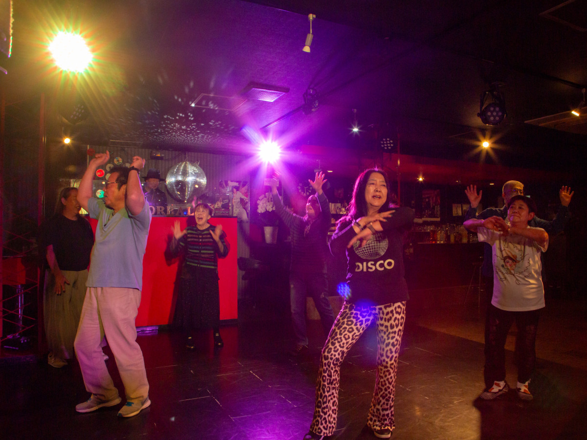 照明やミラーボール、泉谷さんの掛け声による演出も=高松の「ディスコ・ミラーボール」でシニア向けエクササイズ「DISCO DE 健康ステップ」