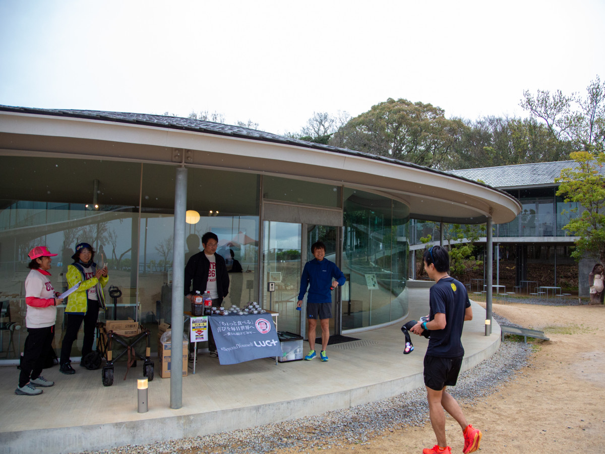 屋島山上交流拠点施設「やしまーる」正面のエイドポイント=高松で「ウルトラうどんマラニック(UUM)」