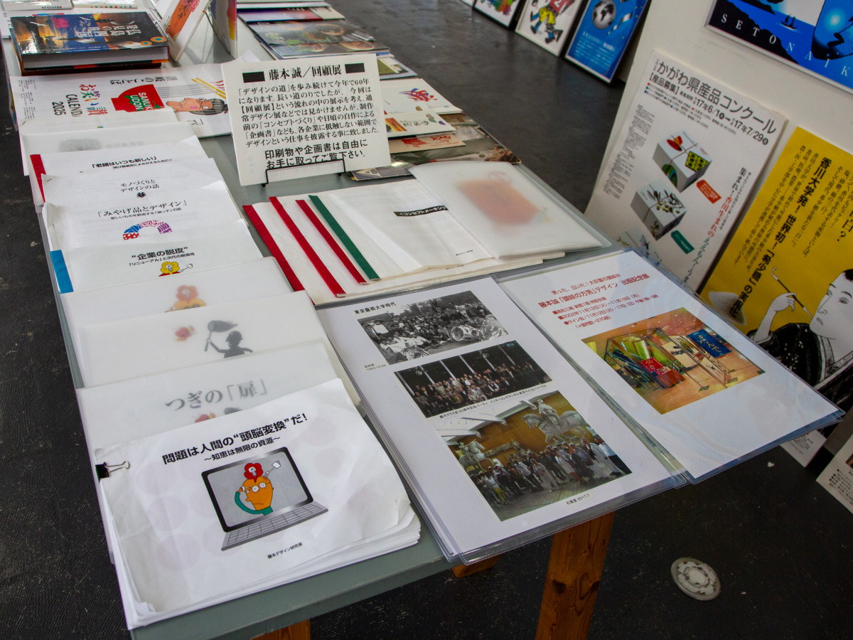 香川を拠点に活動するグラフィックデザイナー・藤本誠さんの回顧展が現在、商業施設「北浜アリー」内のギャラリー「デザインラボラトリー蒼(あお)」(高松市北浜町)で開かれている。