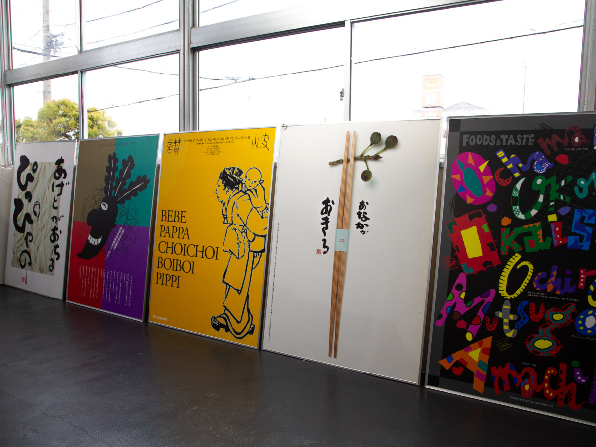 讃岐弁を題材にしたポスター 100点制作し、後に高松市に寄贈された=北浜アリーで高松出身のデザイナー・藤本誠さん回顧展