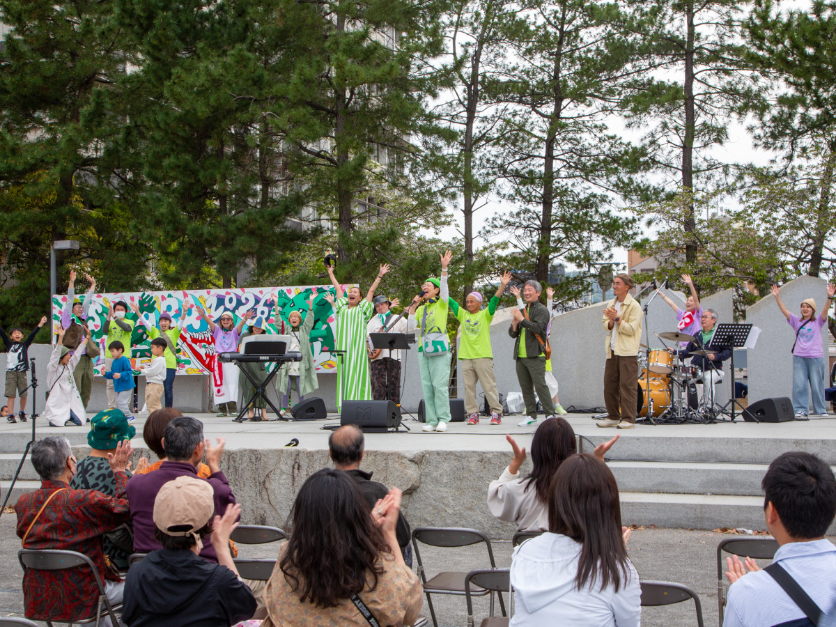 イベントを締めくくる「アスパラバンド」のステージ=サンポート高松で「アスパラ大騒ぎ」