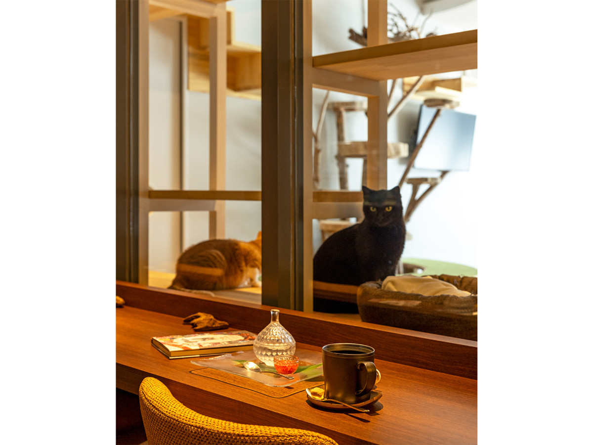 「ねこパーク」の保護猫が出迎える=坂出・鎌田醤油の「本町一丁目カフェ」1周年