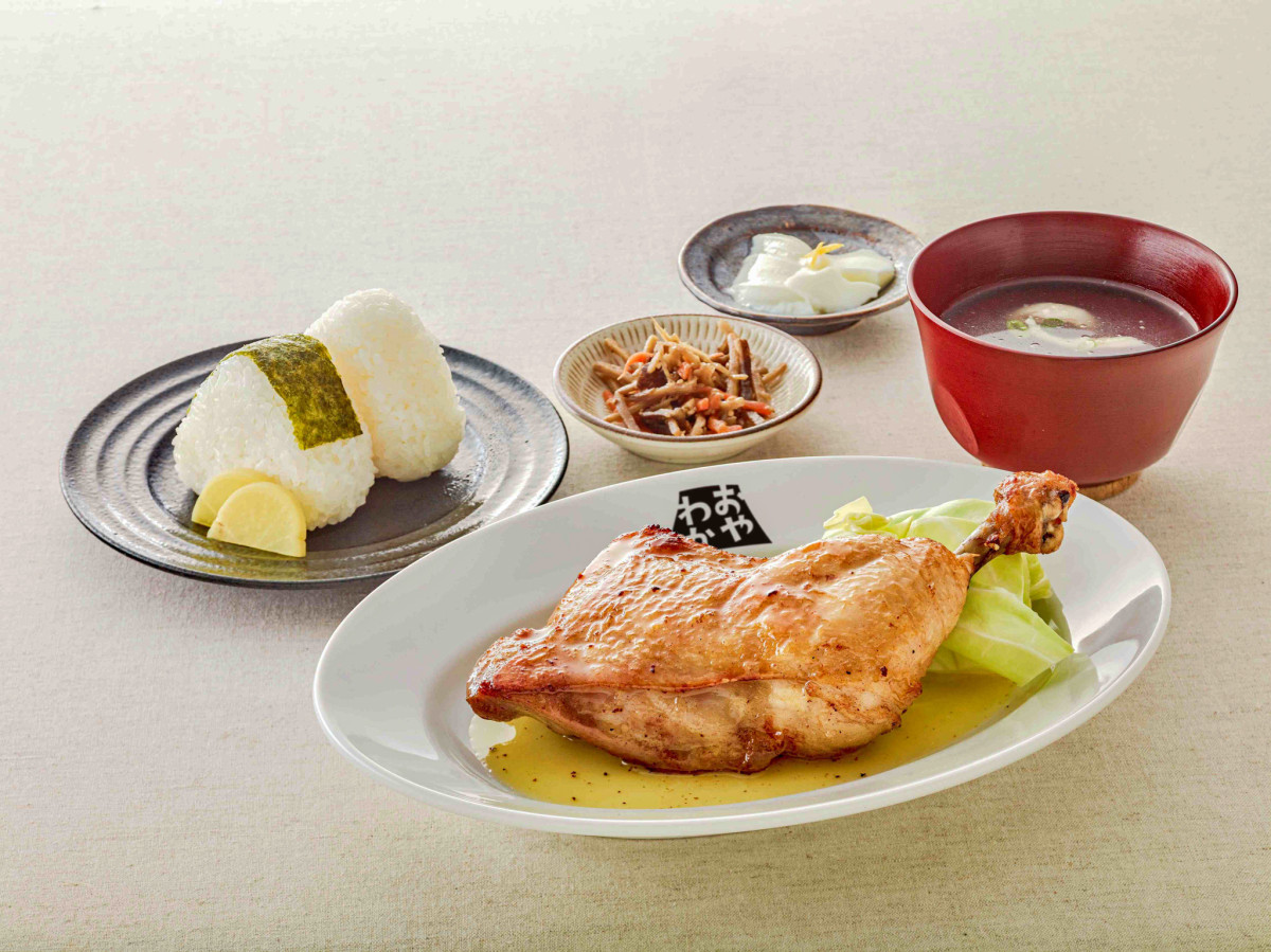若鳥にスープやおにぎりが付くランチ=高松・リーガホテルゼスト高松1階に骨付鳥専門店「おやわか高松店」
