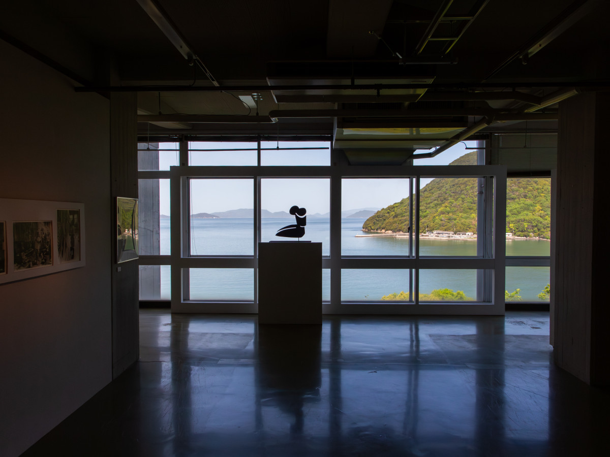 瀬戸内海が一望できるエントランス=高松・川島猛アートファクトリーで企画展「川島猛 60年の軌跡 挑戦-見果てぬ夢を追う旅へ Part1」