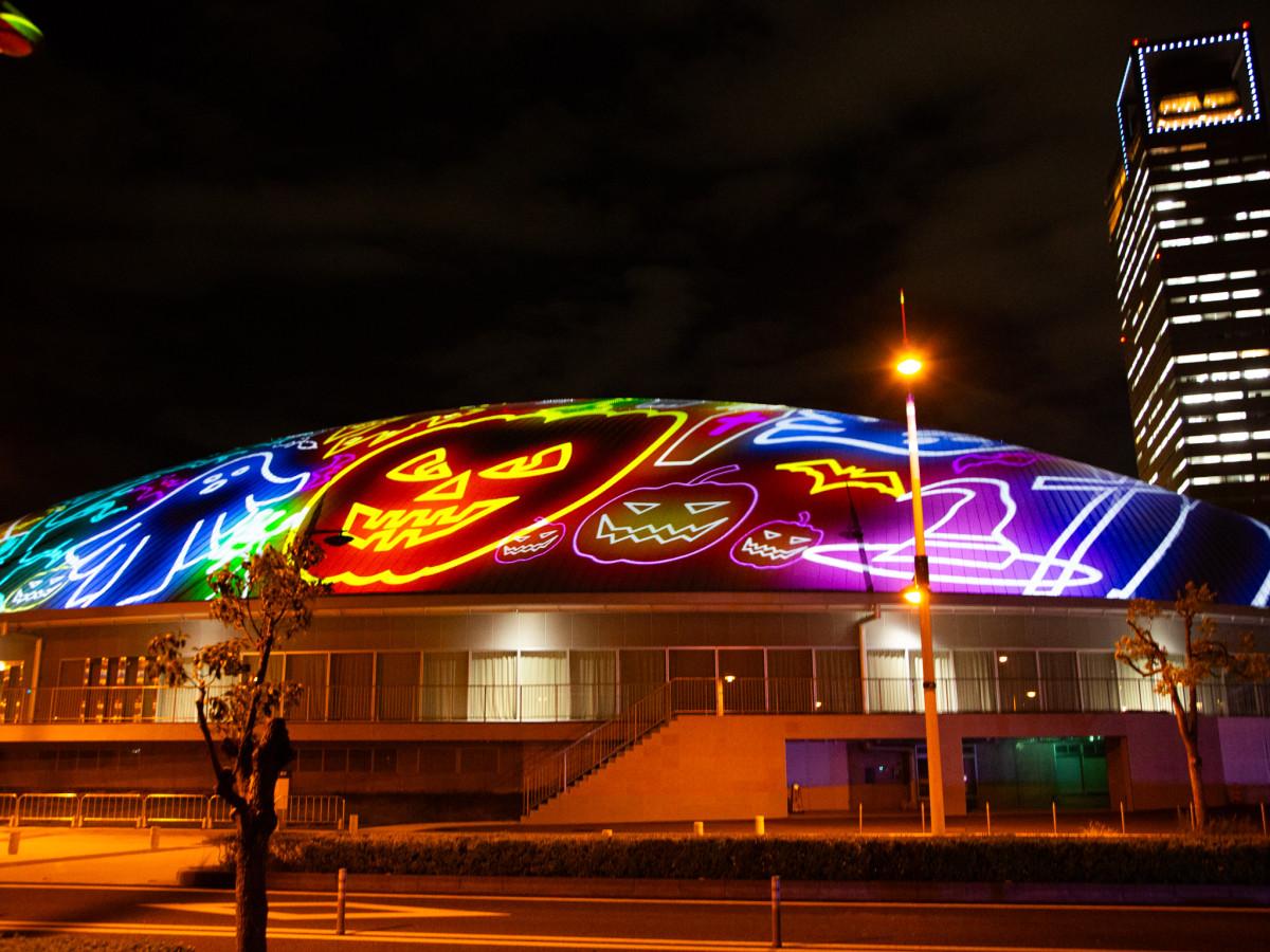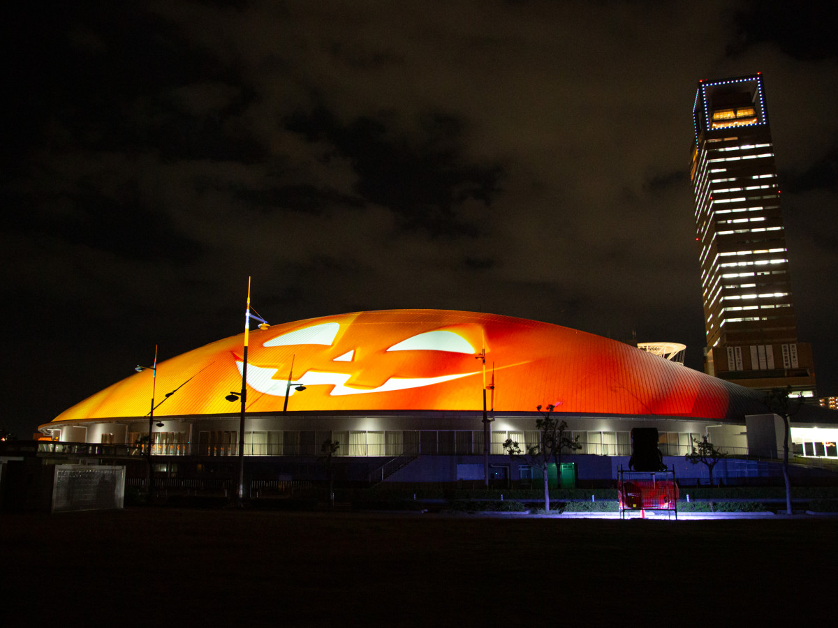 アリーナ一面が巨大な「ジャックオランタン」になる場面も=あなぶきアリーナ香川でプロジェクションマッピング ハロウィーン題材に