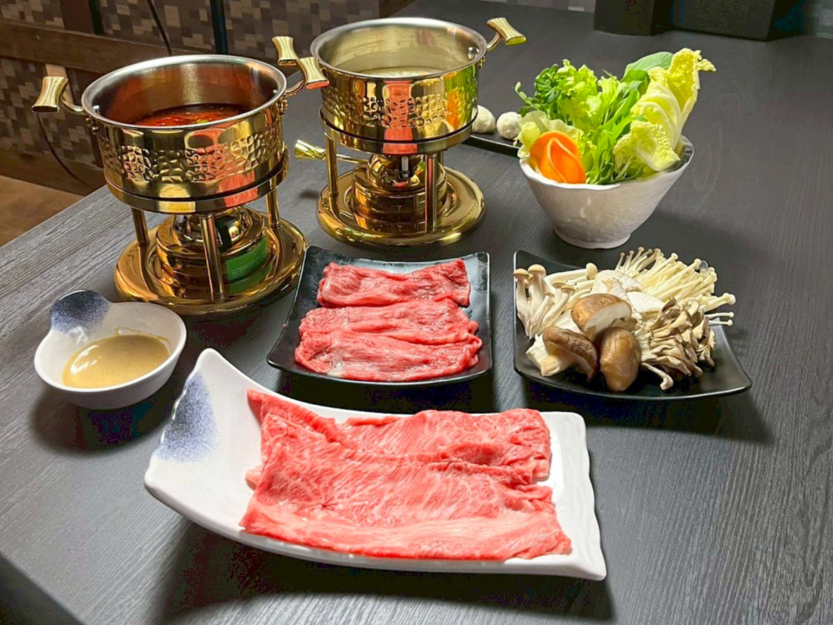 国産肉や野菜などさまざまな具材を用意する火鍋=常磐町に「PANDA火鍋」