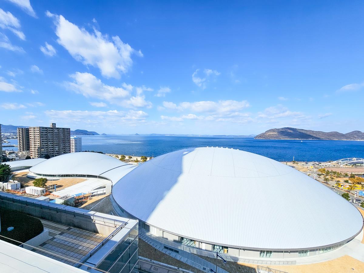 海から見たあなぶきアリーナ香川=あなぶきアリーナ香川がベルサイユ賞最優秀に