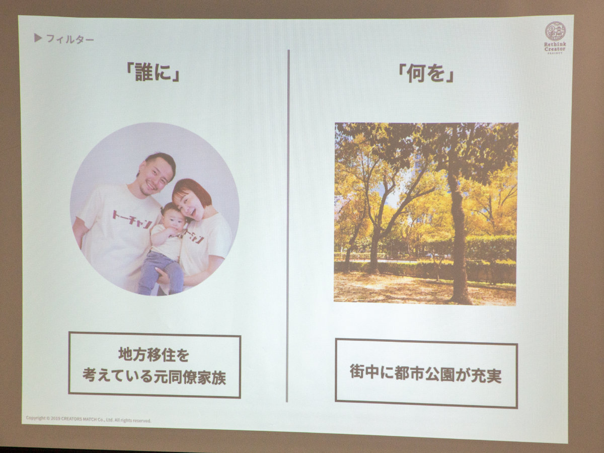 「Rethink Creator PROJECT」とは「地元を誰かにまかせない」をキーワードに地域の魅力を再発見・発信できる人材を日本全国に創出し、地元住民による地域活性を目指すプロジェクト。2018(平成30)年からスタートし、これまで全国の約50の地域で90回以上のセミナーを重ねてきました。主催はインターネット広告で多くの実績を持ち、クリエイターの養成や支援も行うクリエイターズマッチ(東京都渋谷区)。本プロジェクトは同社のメソッドと日本たばこ産業株式会社(=JT、東京都港区)が推進する地域社会への貢献活動「Rethink PROJECT」がコラボしたもの。セミナーでは、主にデザイン未経験者を対象に、デザインに必要な情報収集の考え方を座学とワークショップを通して学ぶことができます。高松では昨年9月にも開催し、今回で3回目となります。